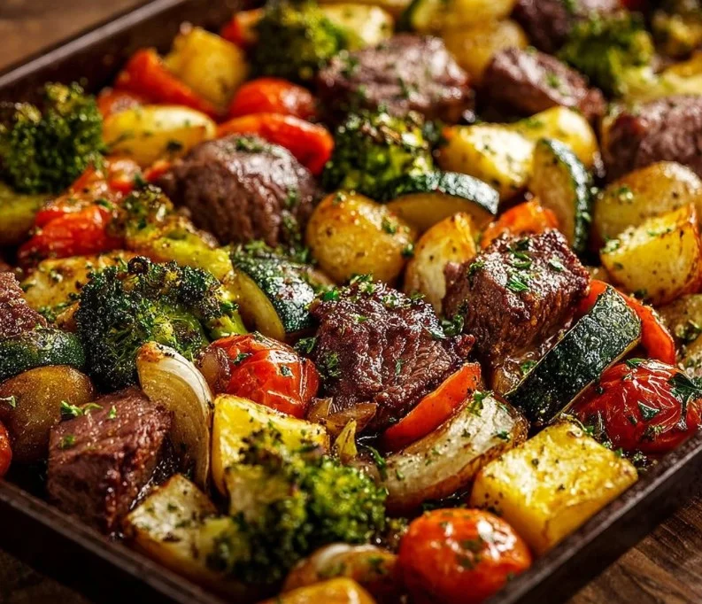Rest and Serve: Remove the sheet pan from the oven. Let the beef rest on the pan for 5 minutes. This crucial step allows the juices to redistribute throughout the meat, ensuring it is moist and tender. After resting, toss everything together on the pan one last time, garnish with fresh chopped parsley if desired, and serve immediately.