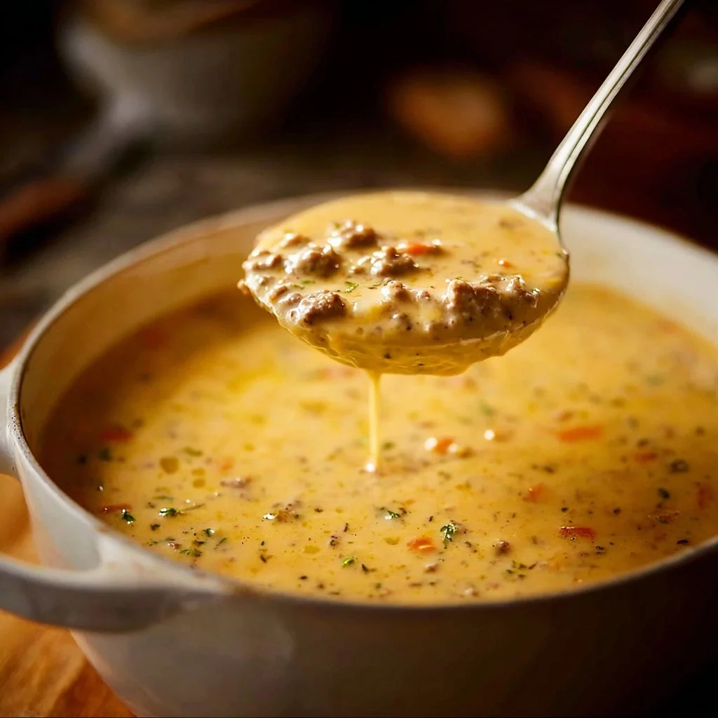 A warm and creamy cheeseburger soup that combines ground beef, fresh vegetables, and rich cheddar cheese, perfect for cozy evenings and easy weeknight dinners.