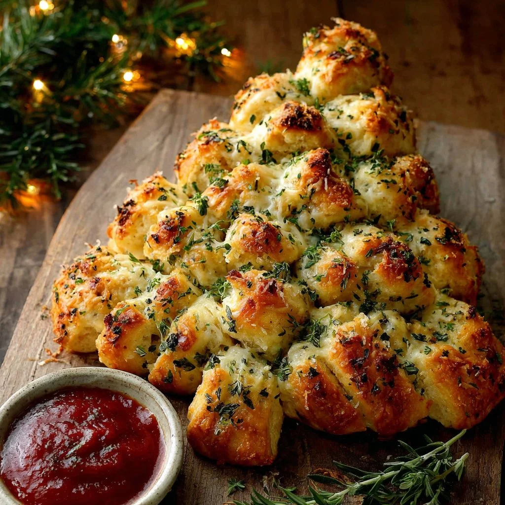 Cheesy Christmas tree bread stands out for its blend of flavors and textures. Each piece is golden brown and airy, with melted cheese that stretches temptingly between layers, and a hint of herb-infused garlic butter that awakens the senses. Whether served as an appetizer or a fun addition to your main meal, this bread is sure to impress your guests and elevate your festive spread.