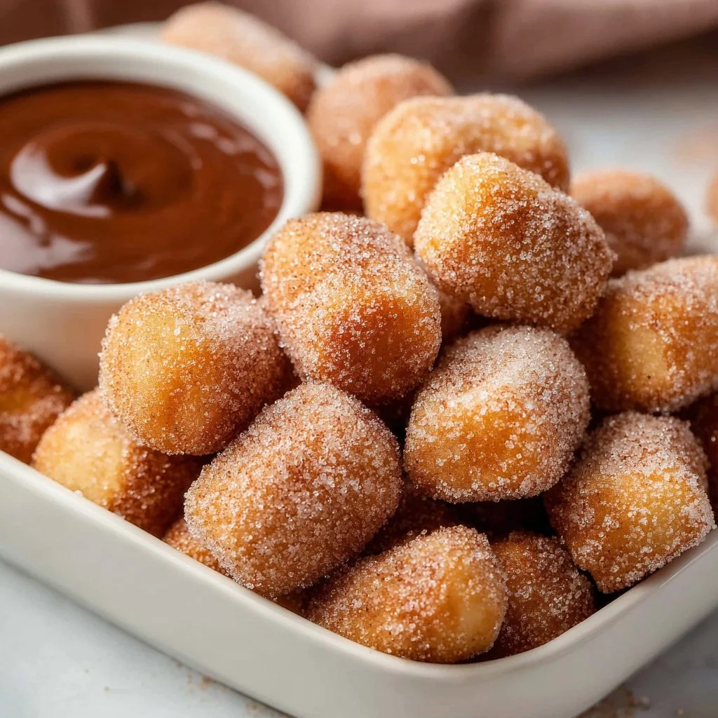 • Churro bites with filling: Add a dollop of chocolate hazelnut spread or cream cheese filling inside before piping.