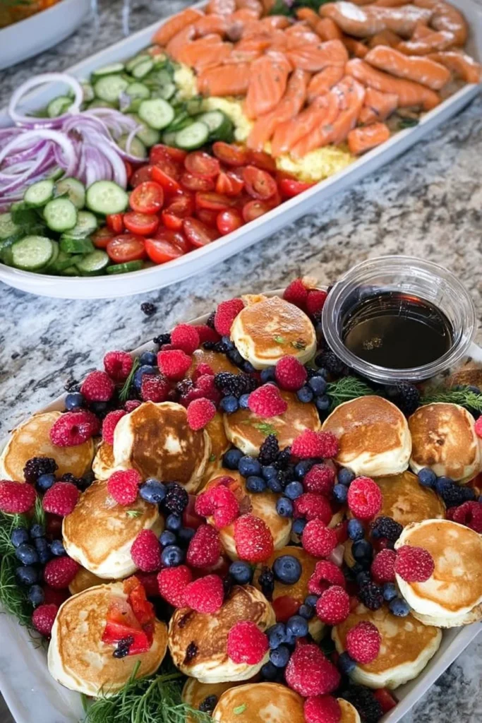 For serving, I recommend presenting dishes on large platters or boards for a casual yet sophisticated look. Pair pastries with fresh fruit arrangements for a colorful display. A small vase of flowers can add charm to the table, while coffee, juice, and sparkling water keep the drinks flowing. Each guest can customize their plate, mixing and matching to suit their tastes.