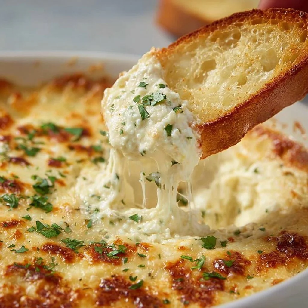 A rich and creamy garlic bread dip that combines roasted garlic and cheesy goodness, perfect for parties or cozy nights in.