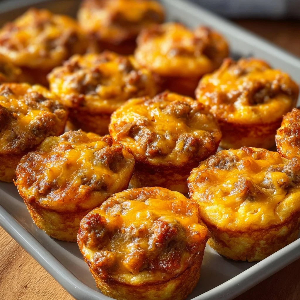 To create these delightful muffins, preheat your oven and prepare a mini muffin tin. Mix the pancake mix, milk, eggs, and syrup in a bowl until smooth. Then, fold in your browned sausage and cheese before filling the muffin cups. Bake until they’re golden and firm, and enjoy these tasty bites warm or store them for later.