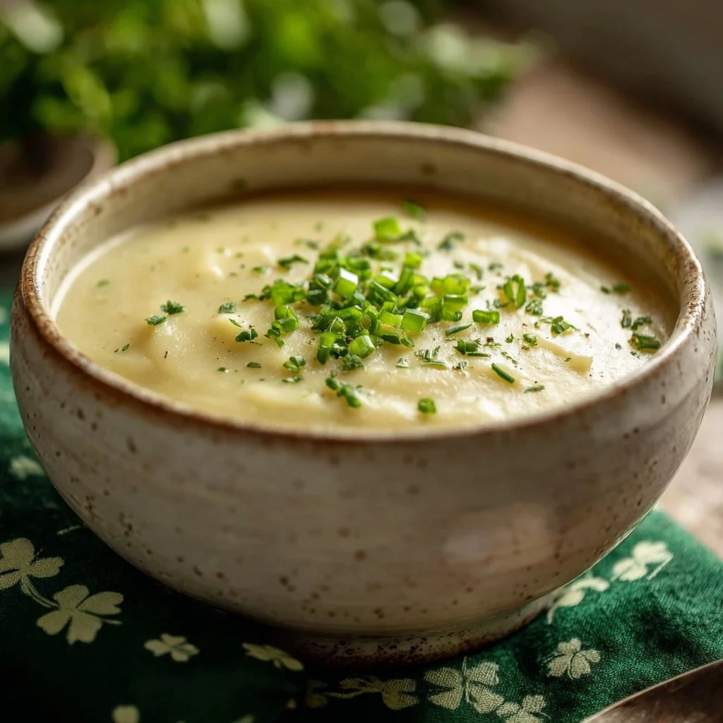 I love serving Irish potato soup in rustic bowls, garnished with freshly chopped herbs for a pop of color. Pair it with warm, crusty bread or a side salad for a delightful meal. The contrasting textures of the smooth soup and the crunchy bread create a perfect bite.