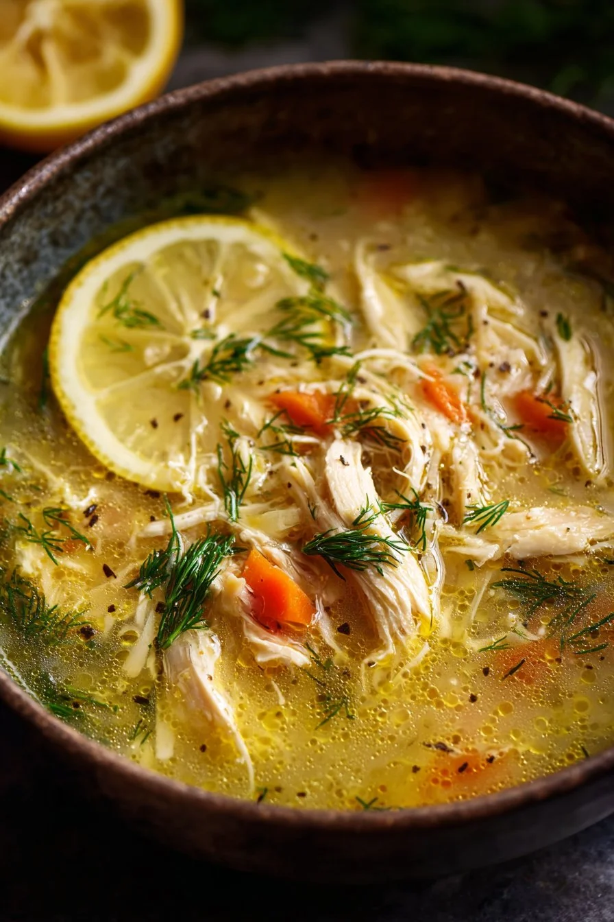 Lemon chicken soup pairs beautifully with crusty bread or a fresh green salad for a wholesome meal.