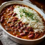 To serve Louisiana red beans and rice, ladle the bean mixture generously over a bowl of white rice. You can garnish with finely chopped green onions for freshness and serve with a splash of hot sauce on the side, allowing each person to adjust the heat to their liking. A crusty piece of cornbread also pairs beautifully to soak up the savory broth.