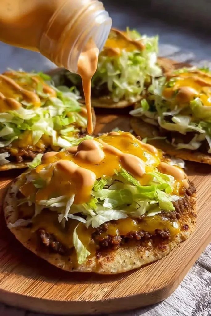 - Drizzle with Big Mac sauce, ensuring even coverage for flavor in every bite.