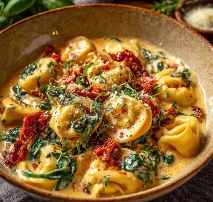 A creamy, garlicky cheese tortellini dish that’s perfect for impressing loved ones or indulging yourself, featuring a rich sauce that balances beautifully with the delicate pasta.