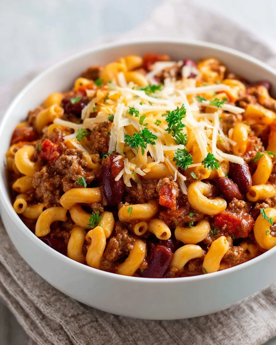 Feel free to customize One-Pot Chili Mac by adding diced bell peppers or corn for added sweetness. You can also swap pasta types—try using whole wheat macaroni or gluten-free options. For a creamier texture, add cream cheese alongside the shredded cheese.