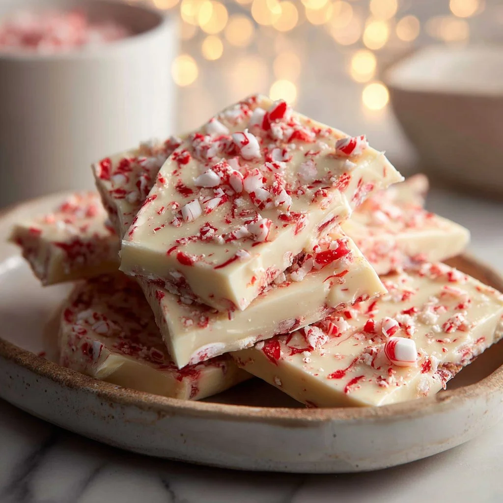 A delectable holiday treat made from layers of dark and white chocolate, topped with crunchy candy canes for a festive flavor experience.