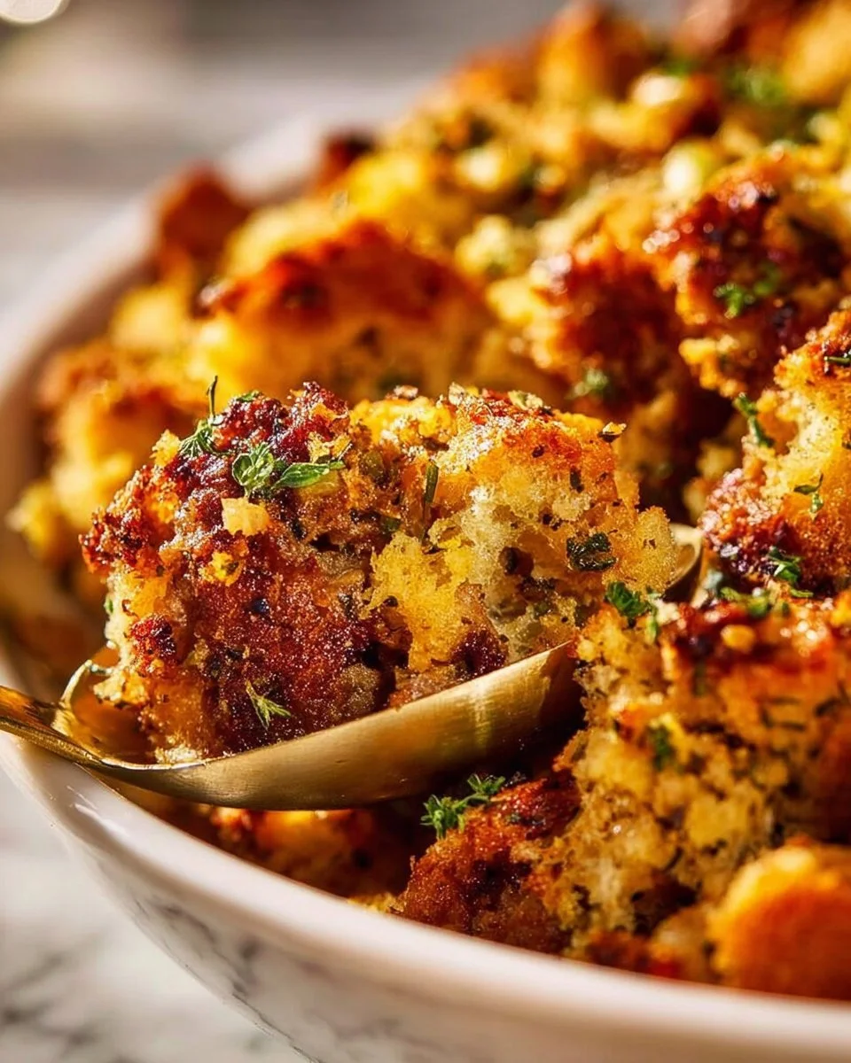 What makes it special? The combination of savory sausage, freshly baked bread, and aromatic herbs creates a beautiful texture and rich flavor. Anyone who enjoys hearty, homemade dishes will love this simple yet satisfying stuffing.