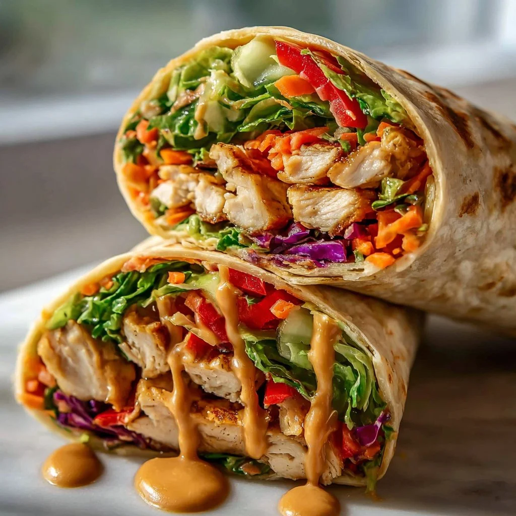 These Thai peanut chicken wraps are a quick and flavorful meal, packed with tender chicken, crunchy vegetables, and a rich peanut sauce. Perfect for busy weeknights and gatherings.